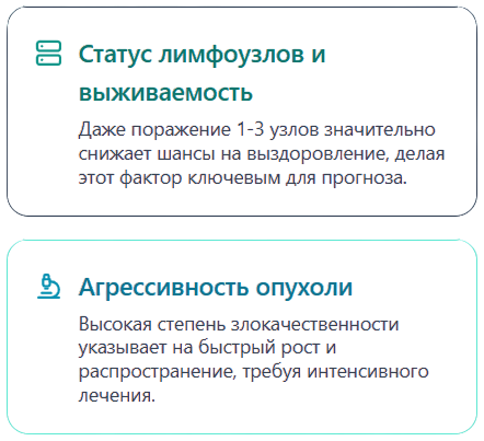 | Метастазирование (чаще в печень и легкие) | Раковые клетки распространяются по крови и лимфатическим путям в другие органы | Долгое время может не давать симптомов; позже — похудание, слабость, боли, нарушения функции пораженного органа | Основной фактор, ухудшающий прогноз и усложняющий лечение | Полное стадирование, системная терапия; у части пациентов — удаление или локальное лечение метастазов |
