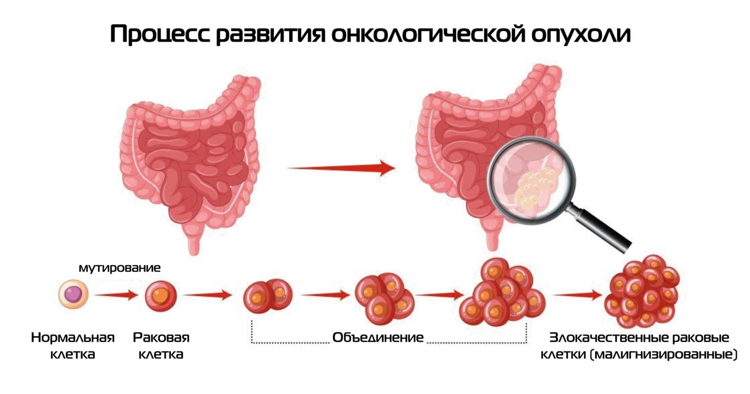 Развитие колоректального рака — это сложный процесс, в котором участвуют несколько факторов: